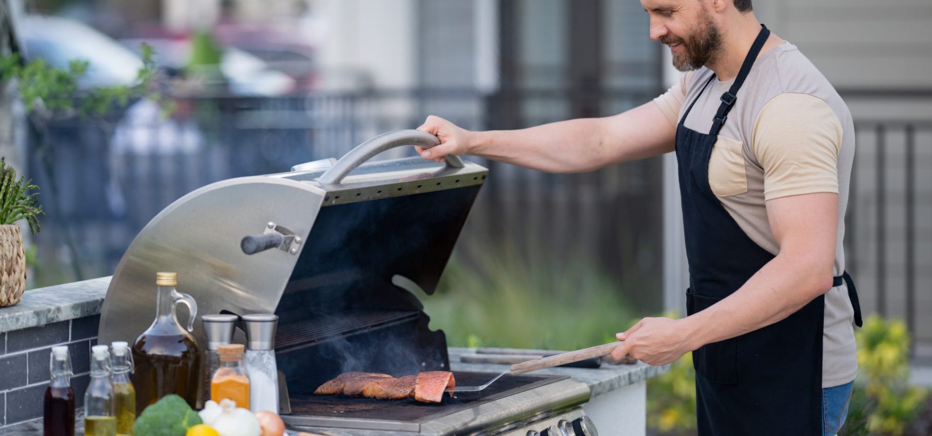 Just like in an indoor kitchen, cabinets and shelves are crucial in organizing and storing your outdoor cooking essentials. Opt for weather-resistant materials like stainless steel or polymer that can withstand rain, sun, and humidity. You can also choose open shelving for easy access to items you use often or closed cabinets for a more streamlined look.